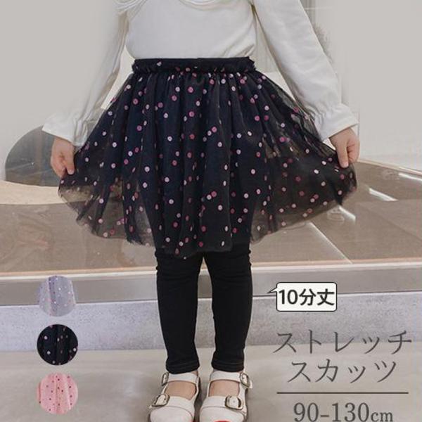 子供服 スカッツ 女の子 キッズ ロングパンツ パンツ スカート レギンスパンツ 重ね着 ボトムス 10分丈 レース柄 チュチュスカッツ こども