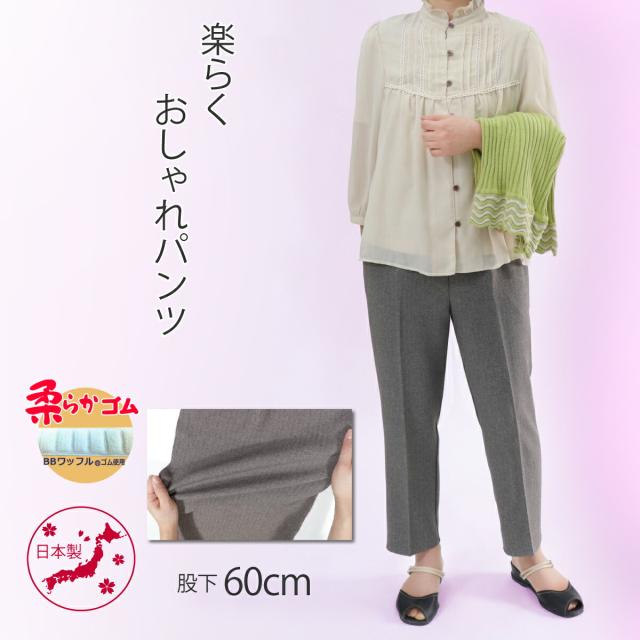 シニアファッション 春服 レディース パンツ 70代 80代 服 おばあちゃん 柔らか ゴム 日本製 送料無料【品番9516】 高齢者 春 秋 プレゼント 母の日 らくらく パンツ 股下60cm 婦人服 祖母 敬老 ズボン