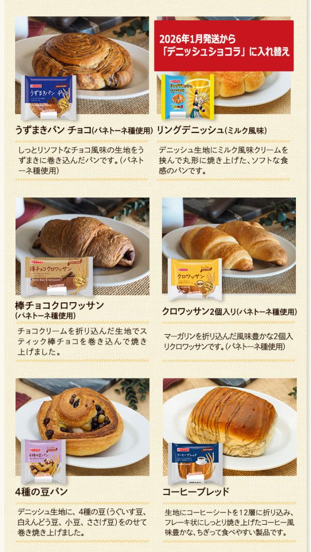 つぶあんぱん(パネトーネ種使用) ジャムパン(ルヴァン種使用) クリームパン(パネトーネ種使用) うずまきパン ミルク うずまきパン チョコ デニッシュショコラ(パネトーネ種使用)【NEW】 棒チョコクロワッサン クロワッサン2個入り 4種の豆パン コーヒーブレッド メープルブレッド チョコブレッド プチチーズメロンパン4個入 バターケーキ ※14種類各1袋入りのセットです |