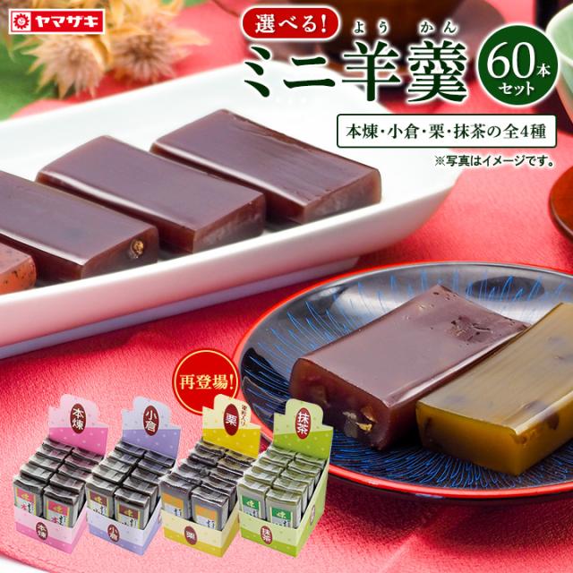 選べるミニ羊かん60本 羊羹 一口ようかん 60本入り 選べる ミニ羊かん 備蓄 非常食 防災 登山 やまざき 山崎 本煉 小倉 栗 抹茶 の4種類 塩は完売