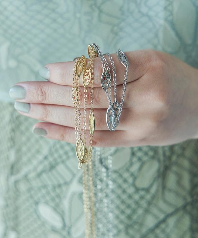 シンプルなドレスに合わせて首元を主役にしたい、そんな存在感を放つアクセサリー。
