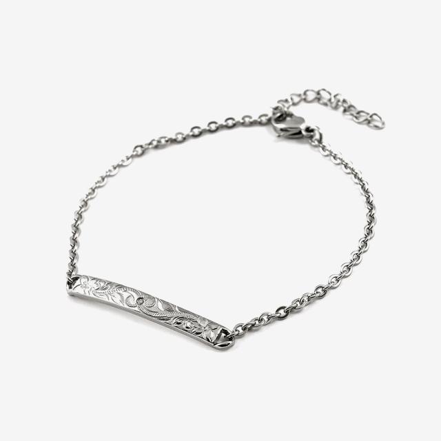 ハワイの花「マイレ」と「プルメリア」を刻んだハワイアンジュエリーのブレスレット。