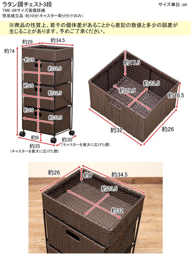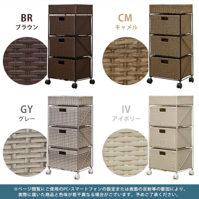 ラタン調 チェスト3段 BR/IV/CM/GY
