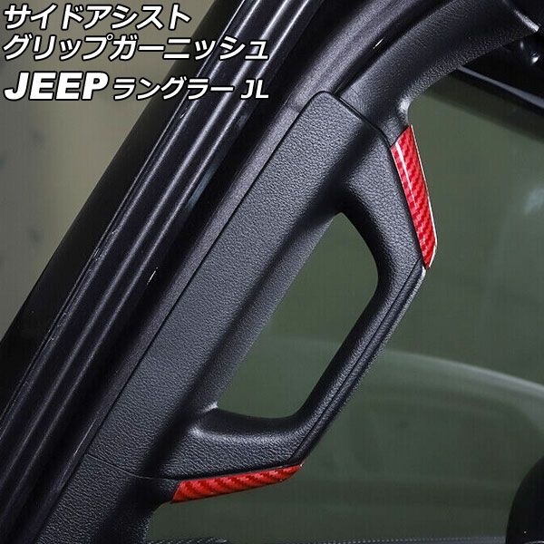 サイドアシストグリップガーニッシュ ジープ ラングラー JL36S 2018年10月〜 レッドカーボン ABS製 2ドア用 入数:1セット(4個) AP-IT2589-RDC