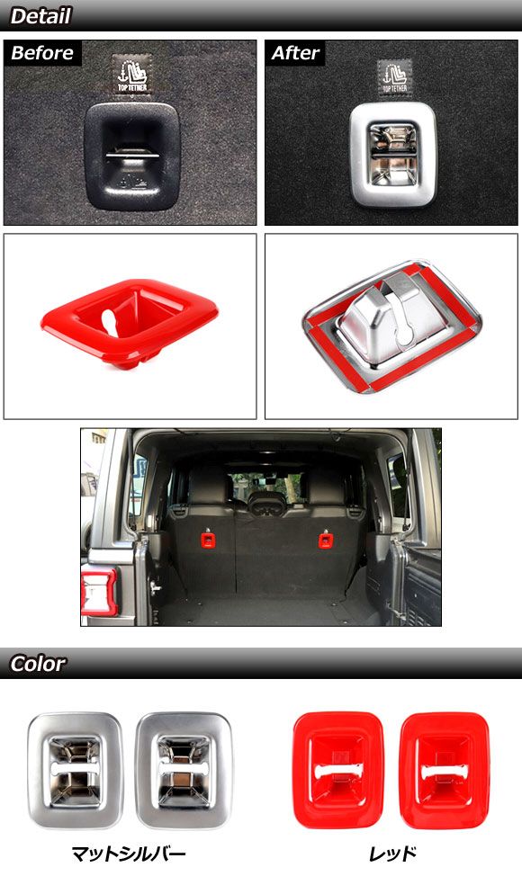 トップテザーアンカーガーニッシュ ジープ ラングラー JL20L/JL36L/JL36S 2018年10月〜 レッド ABS製 入数:1セット(2個) AP-IT2593-RD