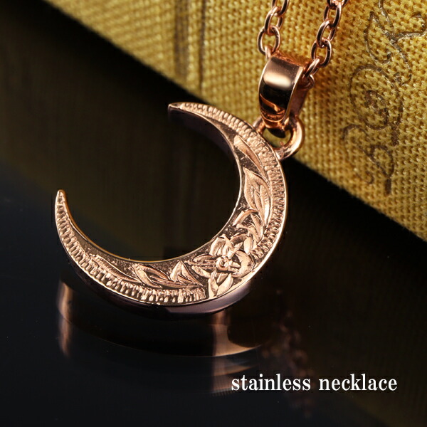 ハワイアンジュエリー ピンクゴールド 三日月 ネックレス サージカルステンレス 金属アレルギーフリー ハワイアン 彫刻 繊細 恋人 彼女