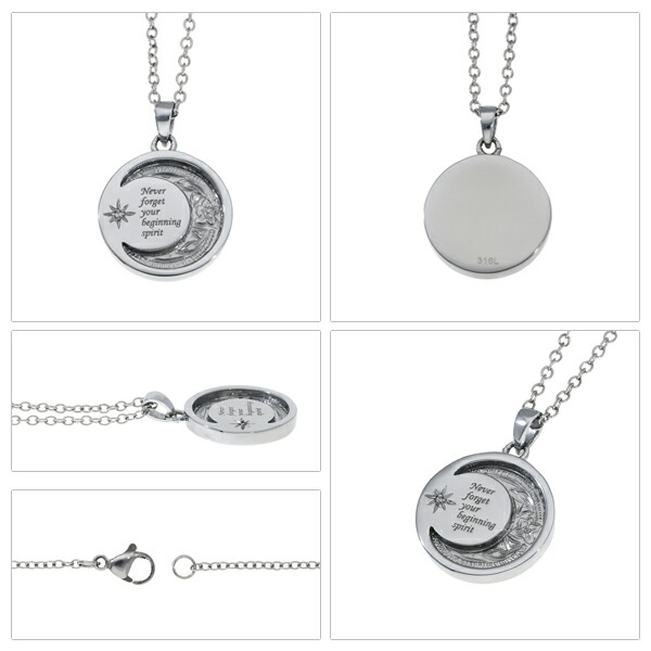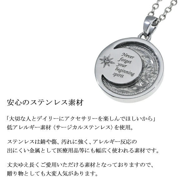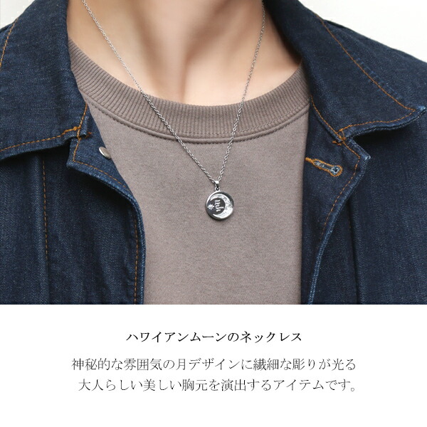 ハワイアンジュエリー 月 ネックレス サージカルステンレス 金属アレルギーフリー ハワイアン 彫刻 繊細 恋人 彼氏 メンズ 男性 誕生日