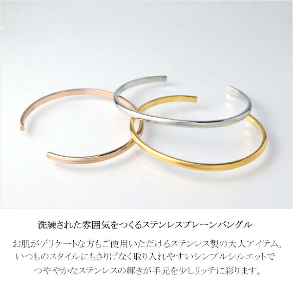 シンプル ステンレス バングル ブレスレット サージカルステンレス 金属アレルギーフリー 腕輪 銀 シルバー かっこいい 上品 大人