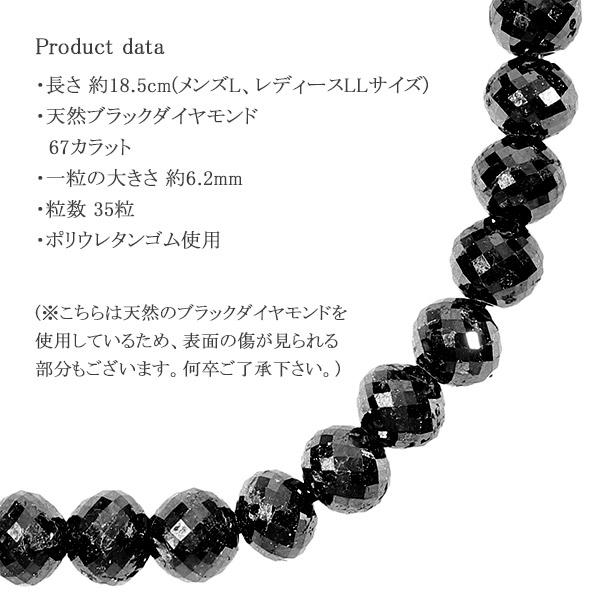 67カラット 天然ブラックダイヤモンド 高品質 ブレスレット 6.2mm 18.5cm メンズL レディースLL サイズ ブラックダイヤモンド 天然