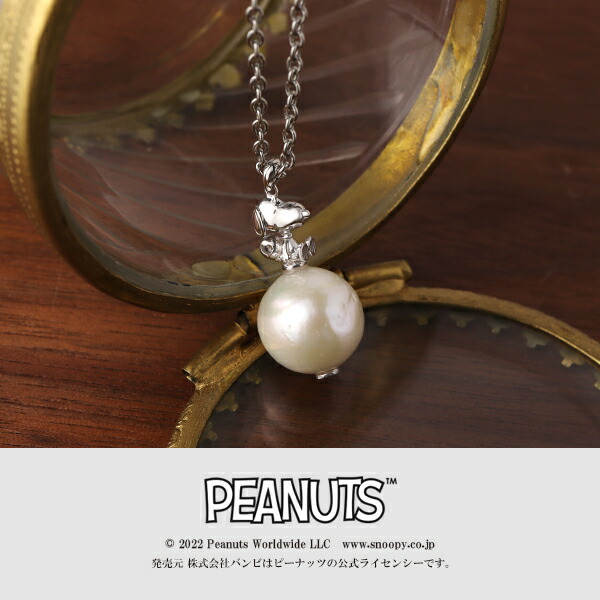 スヌーピー パール ロング ネックレス シルバー925 淡水パール 淡水真珠 公式 PEANUTS グッズ キャラクタージュエリー ペンダント 立体 3D さりげない