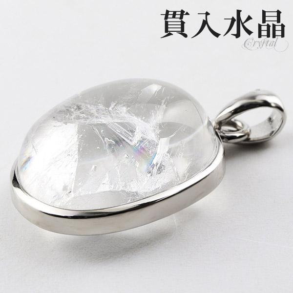 貫入水晶 虹 入り シルバー ペンダントトップ オーバル クォーツインクォーツ 貫入 水晶 天然水晶 レインボー 誕生石 4月 天然石