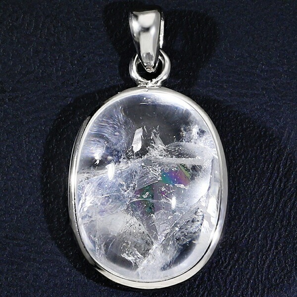 貫入水晶 虹入り シルバー ペンダントトップ オーバル