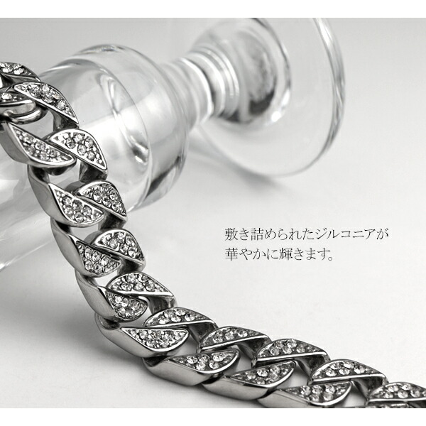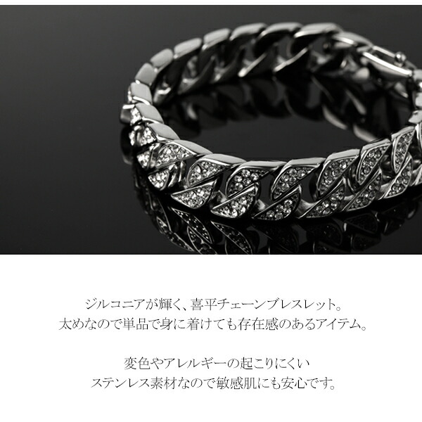幅1.3cm ジルコニア 喜平チェーン ステンレス ブレスレット 21cm