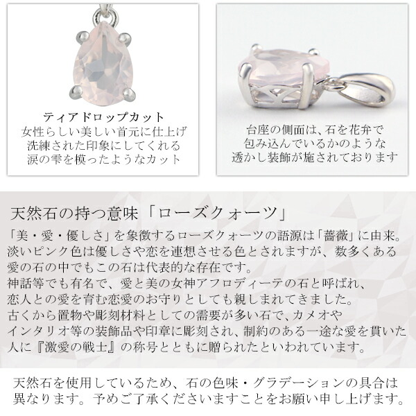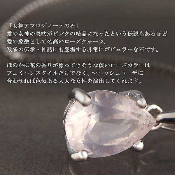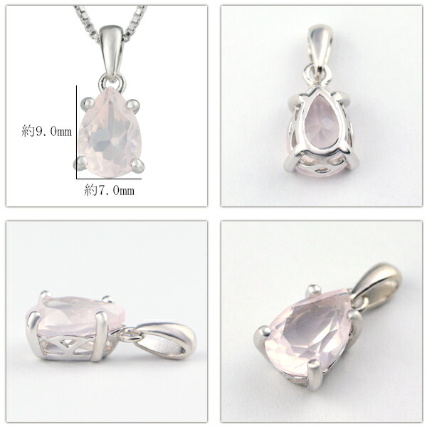 天然 ローズクォーツ 一粒 ネックレス シルバー925 水晶 薔薇水晶 4月 誕生石 天然石 雫 涙 ドロップ しずく ピンク 桜色 シンプル