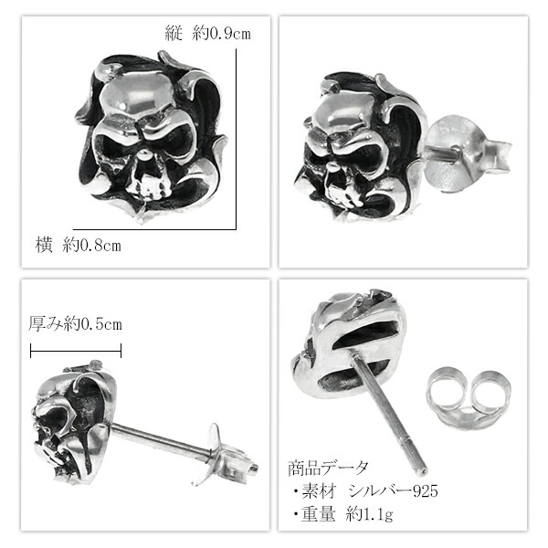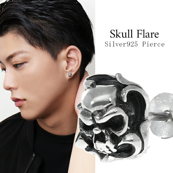 フレア スカル シルバー スタッドピアス 1P 片耳用 ピアス シルバーピアス シルバー925 シルバーアクセ メンズ 髑髏 ドクロ 骸骨 アクセ