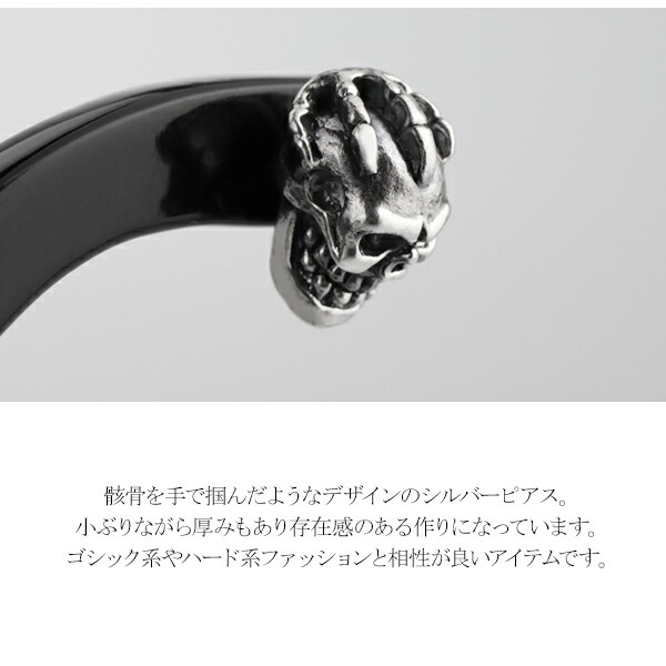 スカル ハンド シルバー スタッドピアス 1P 片耳用 ピアス シルバーピアス シルバー925 シルバーアクセ メンズ 髑髏 ドクロ 骸骨 骨