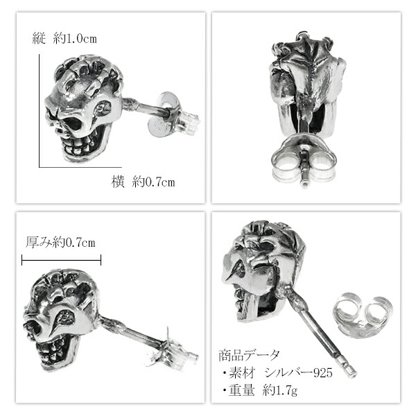 (シルバーアクセサリー スターリングシルバー シルバーピアス メンズアクセサリー メンズピアス 男性用 スタッドピアス スタッズピアス スタッズ 髑髏 ドクロ 骸骨 骨 ボーン おしゃれ かっこいい ゴシック パンク ロック ハード ビジュアル系 プレゼント 彼氏 人気)