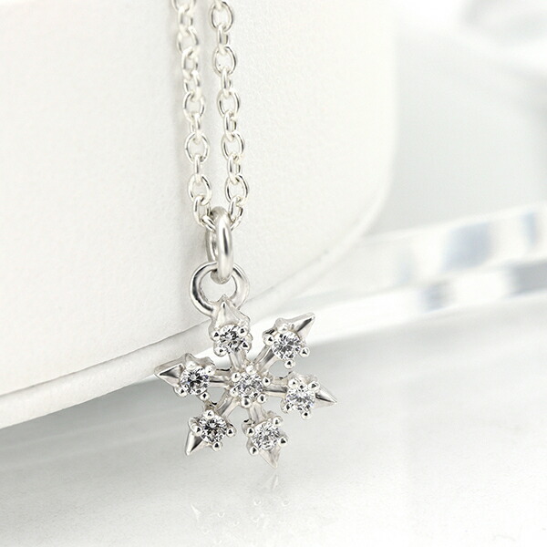 マジェスフィッセン 雪の結晶 ダイヤモンド シルバーネックレス チェーン付き ネックレス ペンダント シルバー レディース 雪 結晶 模様