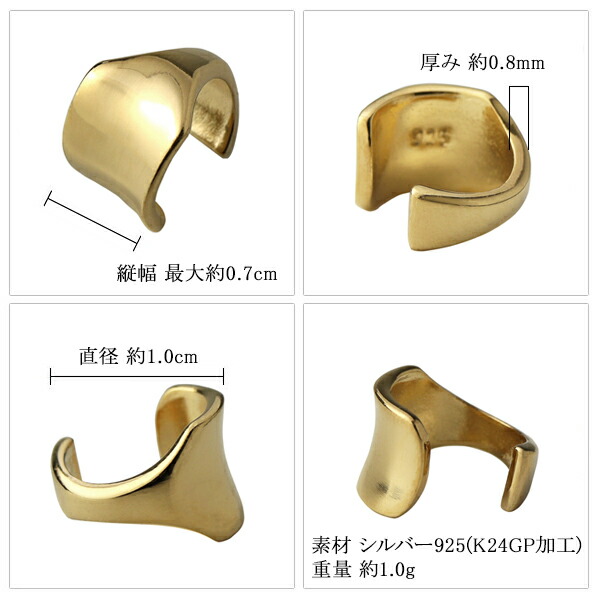 ゴールドコーティング シンプル プレーン イヤーカフ 1P 片耳用 24金 23金 K24 K23 シルバー925 イヤーカフス メンズ レディース