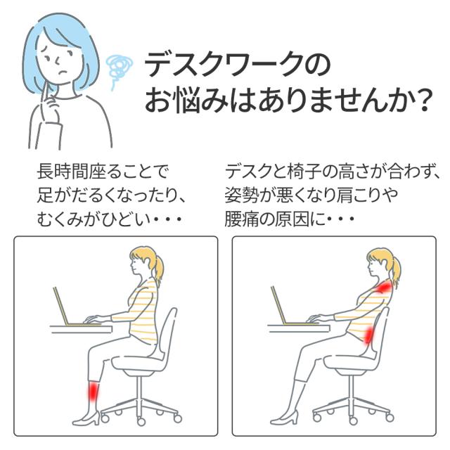 足を置くことで姿勢が良くなり、デスクワーク時の疲れを軽減してくれます。