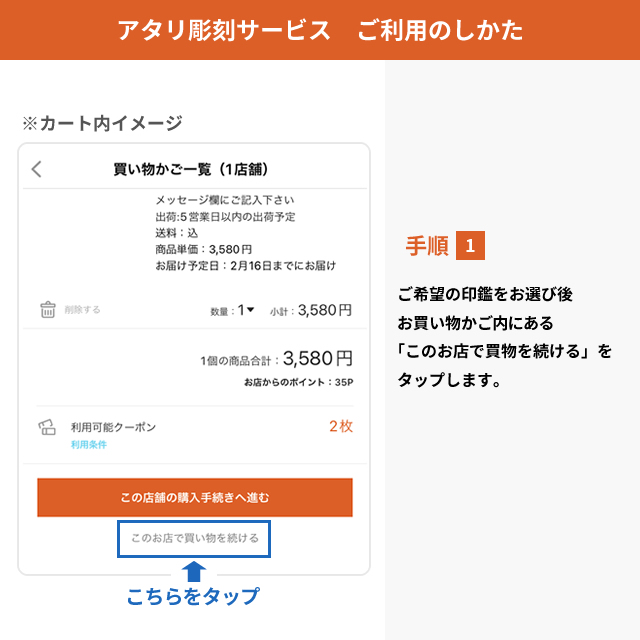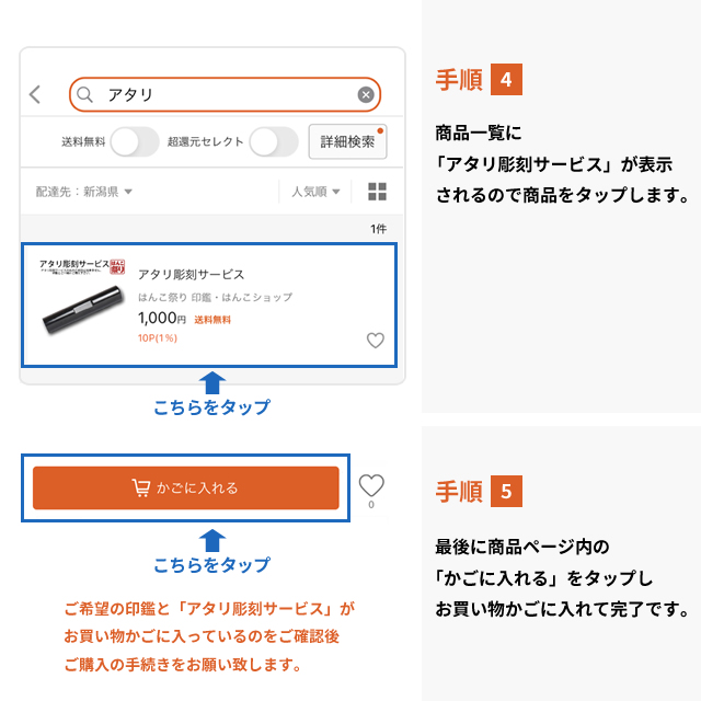 ・「アタリ彫刻オプション」は1つ、印鑑は複数ご購入されるというような場合は、どの商品のアタリ彫刻をご希望かお買い物かご内の備考欄にご記入いただきますよう宜しくお願い致します。