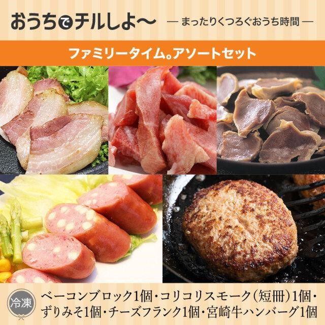 ばあちゃん本舗 ファミリータイムアソートセット ベーコンブロック1個・コリコリスモーク(短冊)1個・ずりみそ1個・チーズフランク1個・宮崎牛ハンバーグ1個)正規代理店 産地直送