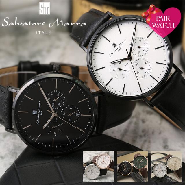 【ペア価格】ペアウォッチ サルバトーレ マーラ 腕時計 SalvatoreMarra 時計 サルバトーレマーラ ペア 男性 女性 用 メンズ レディース 人気 ブランド レザー 革ベルト シンプル ブラウン ブラック 夫婦 カップル お揃い 彼氏 彼女 夫 妻 結婚 記念日 誕生日 プレゼント