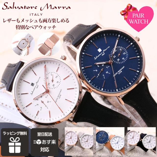 \当店限定ペア/【ペア価格】ペアウォッチ サルバトーレマーラ 腕時計 時計メンズ レディース 用 男性 女性 [ 人気 ブランド 妻 嫁 夫 彼氏 彼女 カップル 夫婦 お揃い プレゼント 記念日 記念 ギフト メッシュ ベルト レザー 革ベルト ペア おしゃれ シンプル 20代 30代 ]