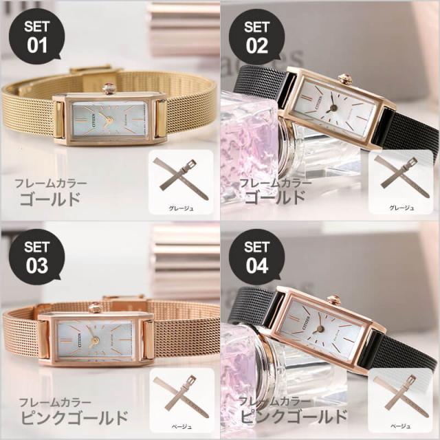 【限定 セット】 シチズン キー 腕時計 citizen kii 時計 レディース 女性 向け ソーラー 革ベルト レザー メッシュ ベルト 華奢 小ぶり 高級 小さめ アンティーク レトロ 四角 スクエア シンプル 人気 モデル オフィス 仕事 通勤 彼女 恋人 妻 母 誕生日 記念日 プレゼント