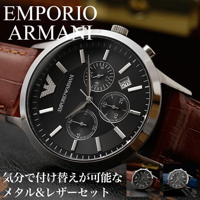 【一年中使える レザーベルト】エンポリオアルマーニ時計 エンポリオアルマーニ 腕時計 EMPORIO ARMANI 時計 エンポリオ アルマーニ メンズ 男性 用 高級 ブランド 撥水 レザー ベルト 革ベルト セット 仕事 クロノグラフ 日付 カレンダー 彼氏 夫 誕生日 プレゼント 限定