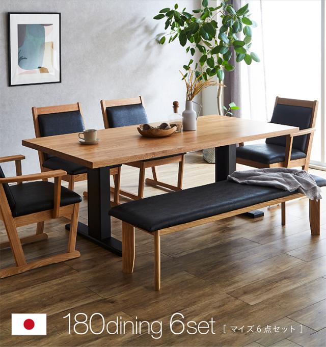 【搬入・組立設置付き】国産 ダイニング6点セット 幅180cm マイズ ダイニングセット ダイニングテーブルセット ダイニングテーブル ダイニングチェア ダイニングベンチ テーブル チェア ベンチ ナチュラル 木製