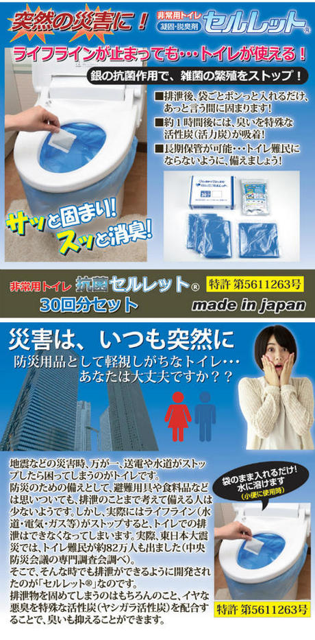 非常用トイレ BROWN Ag 抗菌 セルレット 30回分 セット AG-30F 凝固材 携帯トイレ 防災トイレ 震災トイレ 簡易トイレ 防災用品 送料無料