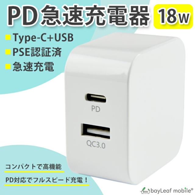 PD 充電器 タイプC 18W 急速充電 Power Delivery QC3.0 USB Type-C AC アダプタ 電源 充電 iPhone iPad スマホ タブレット Android 各種対応 旅行 PSE認証
