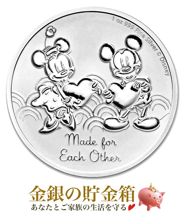 商品名 ミッキー&ミニー ハート銀貨 1オンス クリアケース入り