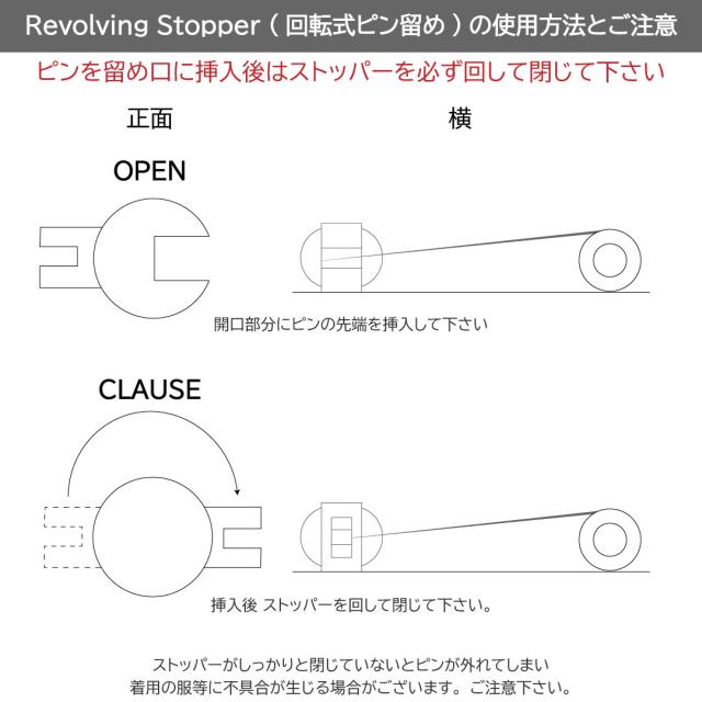 外れにくいストッパー付きの回転式留め具を採用しています。