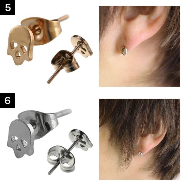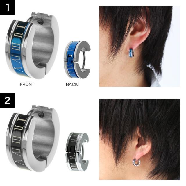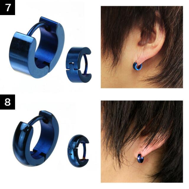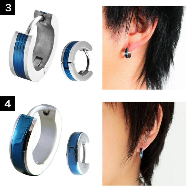 ピアス 送料無料 激安セール つけっぱなし フープピアス メンズ サージカルステンレス シルバー ブルー スカル スタッズ 数字 片耳用(1個売り) Binich 20代 30代 40代 50代 プレゼント 男性用 アクセサリー basse-0001