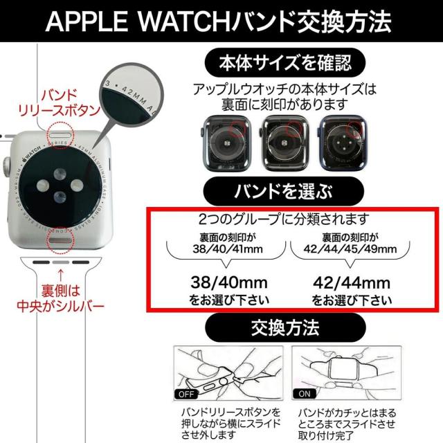 ※38mm/41mmは40mmと兼用、42mm/45mmは44mm/49mmと兼用となります。