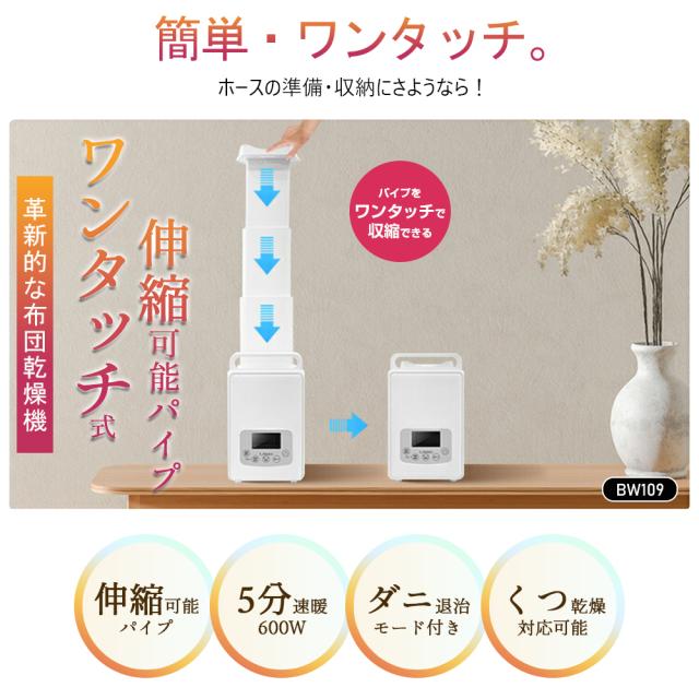 \新年セール★12980円→6980円!/布団乾燥機 ふとん乾燥機 600Wパワフル 2本ノズル 布団・靴2組 5分速乾 コンパクト 靴乾燥 ダニ退治 布団 ハイパワー マット不要 除湿 衣類乾燥機 衣類乾燥 梅雨対策 EVOVE BW101