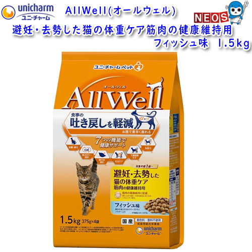 ユニ・チャーム オールウェル 避妊・去勢した猫の体重ケア筋肉の健康維持用 1.5kg(375g×4袋)