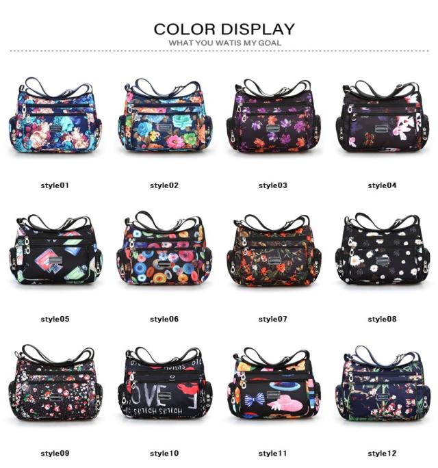 ママバッグ ショルダーバッグ レディース 花柄 斜めがけ アウトドア 12色選択可 撥水 仕切り 軽量 ミニバッグ 鞄 小さめ コンパクト 大容量 ギフト 送料無料