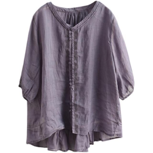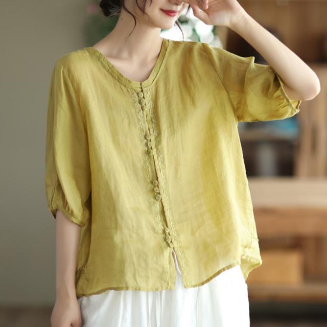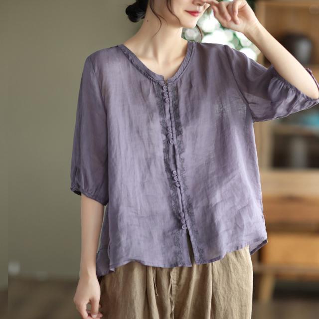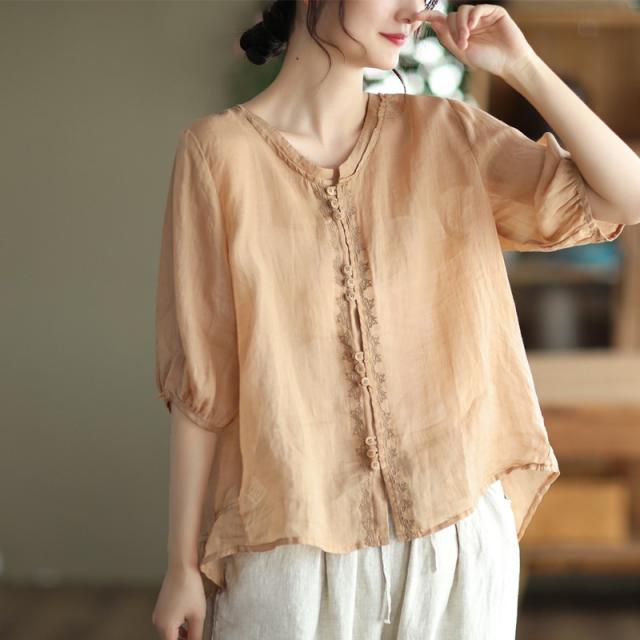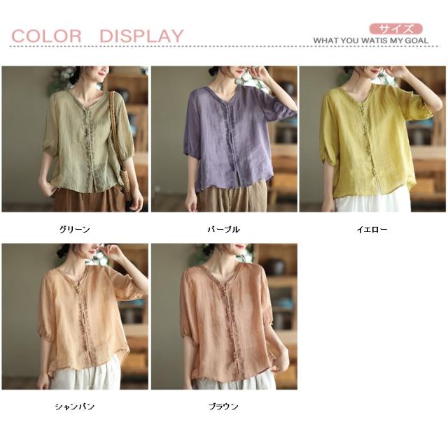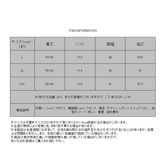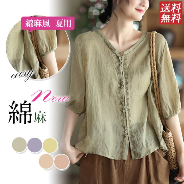 可愛い シャツ ブラウス 綿麻風シャツ フランス 薄手 デザイン レディース トップ リネン 体型カバー ド 涼しい 春夏 送料無料