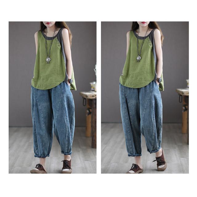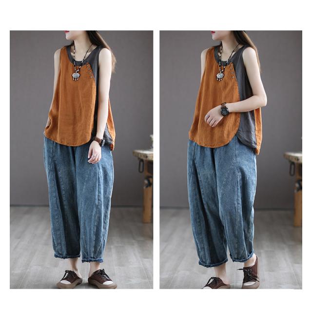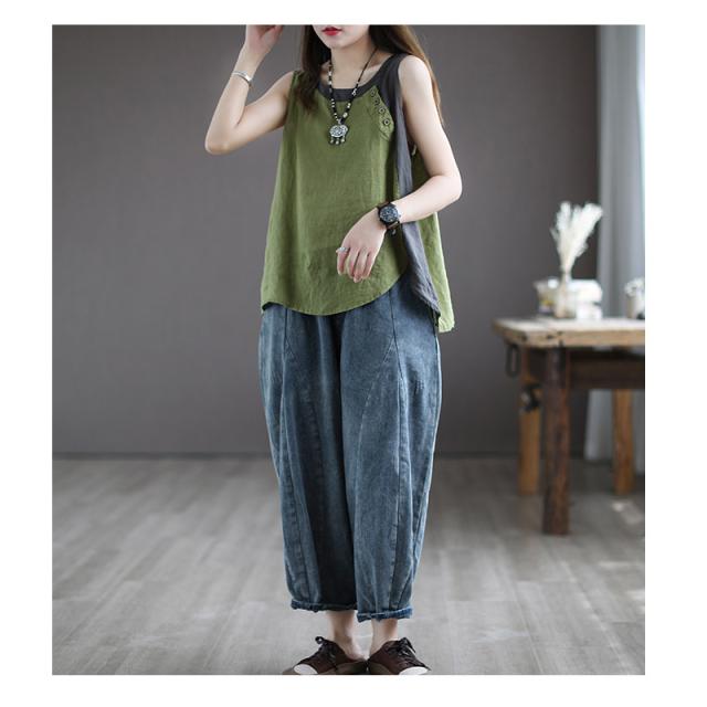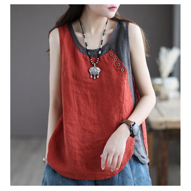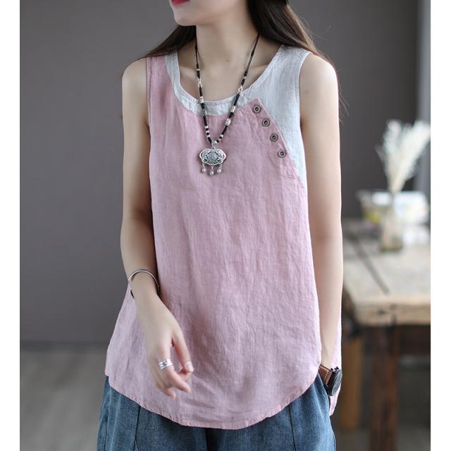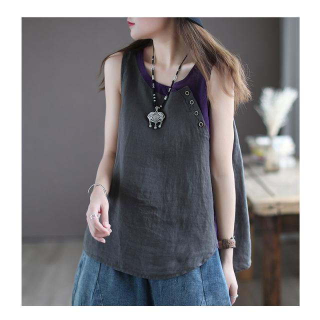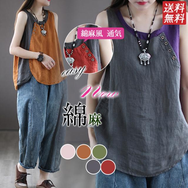 シャツ ブラウス 綿麻風シャツ キャミソール Uネック 薄手 デザイン レディース トップ リネン 体型カバー ド 涼しい 柔かい 春夏 送料無料