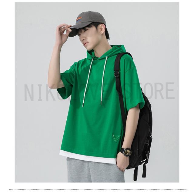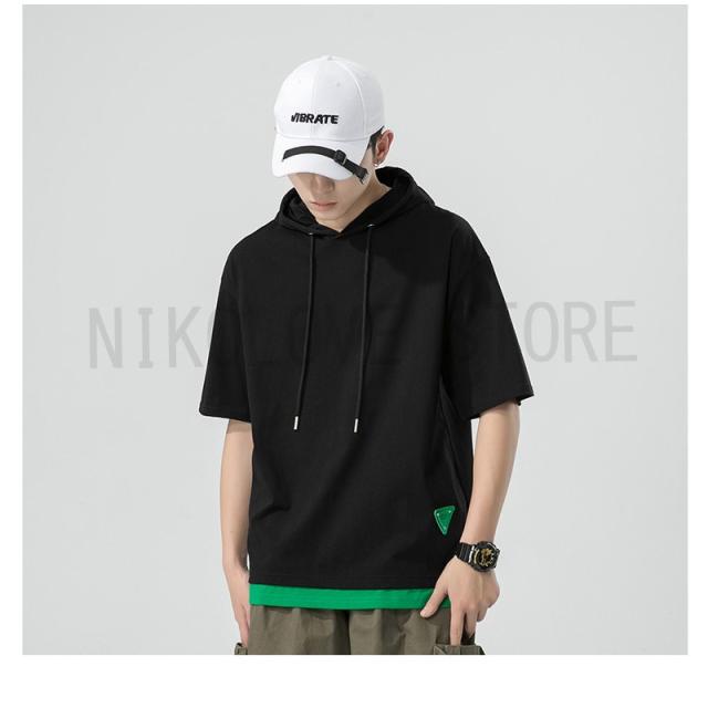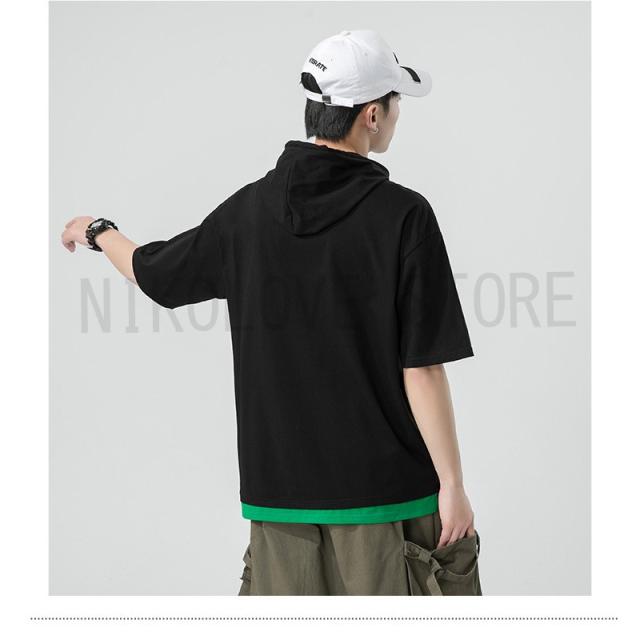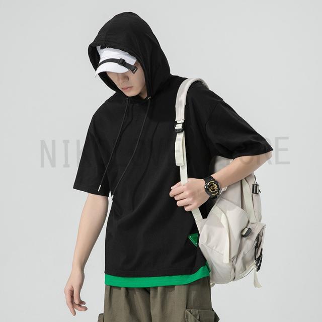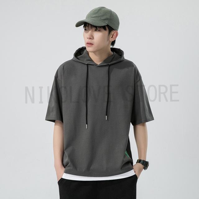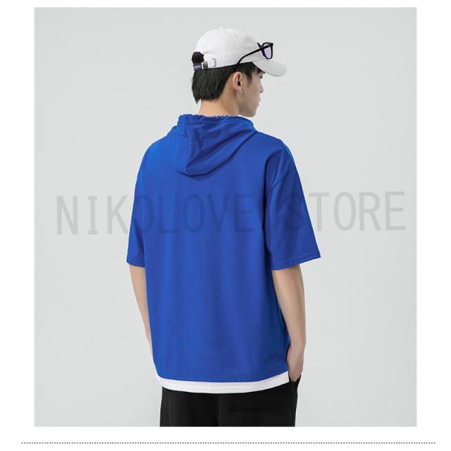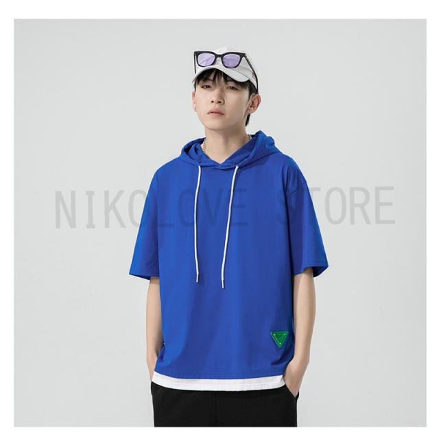 パーカー メンズ フード付き 半袖 半袖パーカー プルオーバ シンプル ゆったり カジュアル レイヤード 柔らかい 春夏着服 通学 男の子 通学 夏服