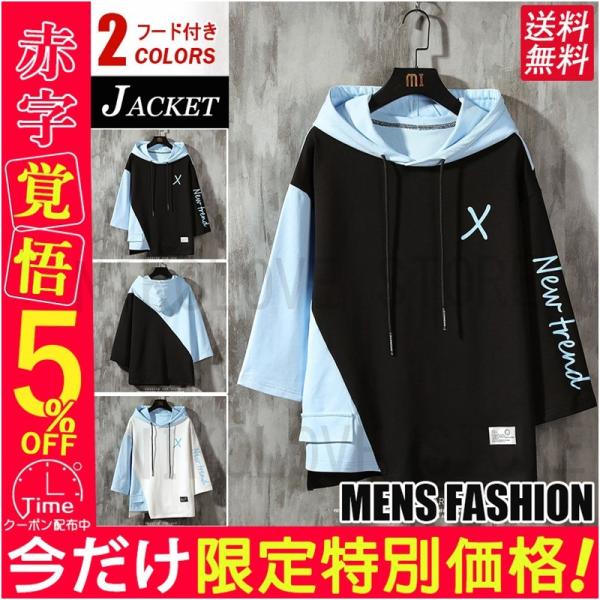 パーカー メンズ フード付き 半袖 半袖パーカー プルオーバ シンプル 小さいサイズ カジュアル 大きいサイズ レイヤード 七分袖 男の子 薄手