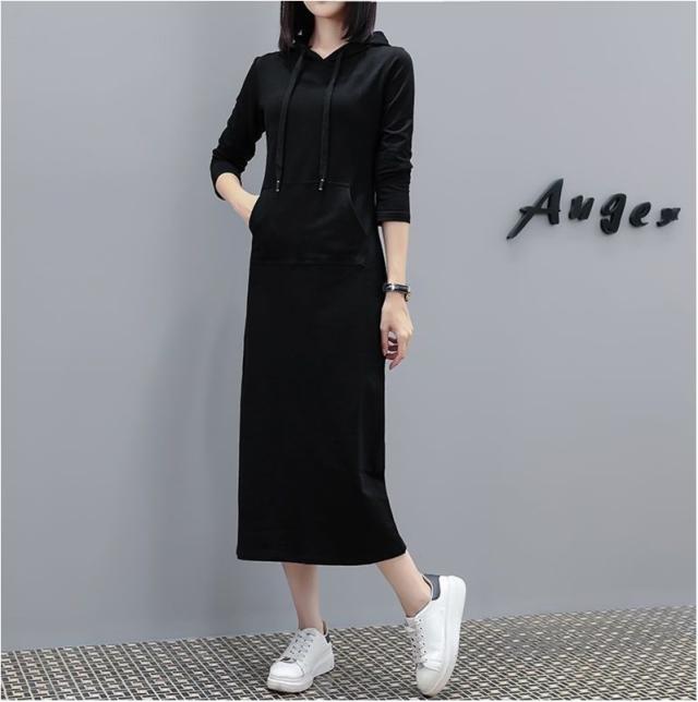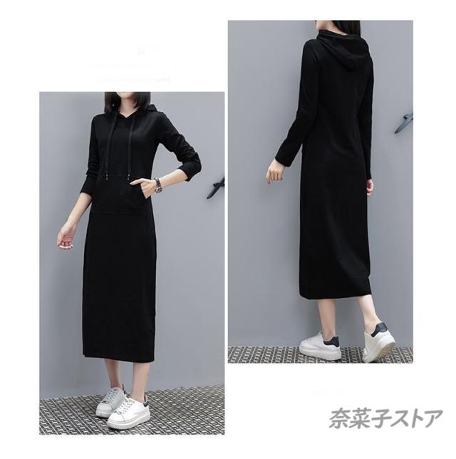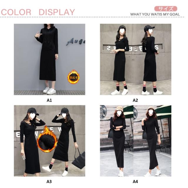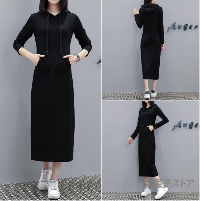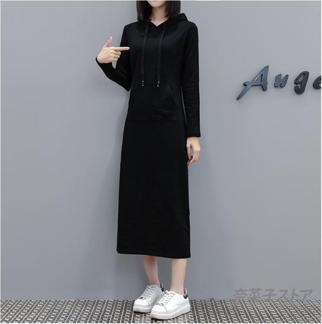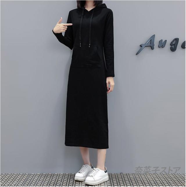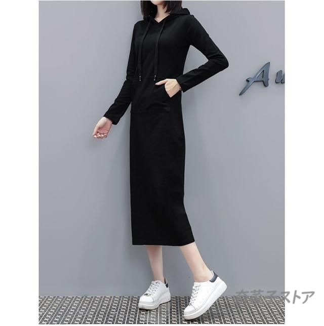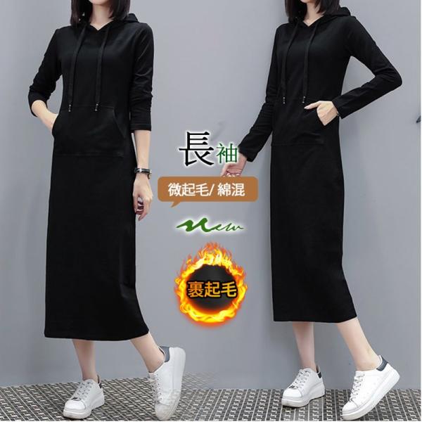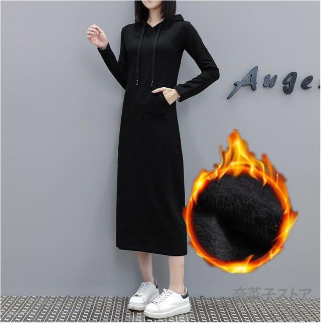 ワンピース パーカーワンピース 裏起毛 レディース 秋冬 長袖 暖かい 極暖 あったか ビッグシルエット 細身無地 綿混 ハイネック