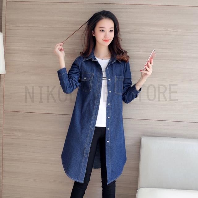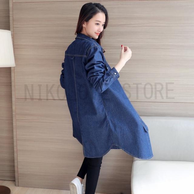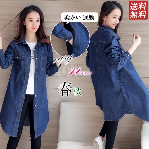 セール シャツ ロング丈 デニムシャツ ジャケット ロングシャツ デニム S-3XL 大きいサイズ 前開き 長袖 体型カバー 無地 デニムワンピース 送料無料