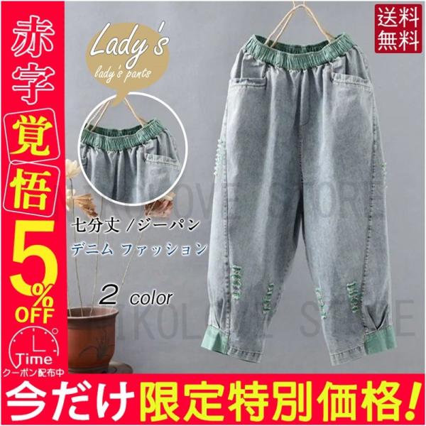 レディース デニム ダメージ パンツ ファッション 七分丈 ジーパン 春 8分丈 ジーンズ 夏 ボトムス ズボン ジーンズ カジュアル ゆったり