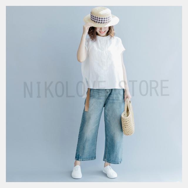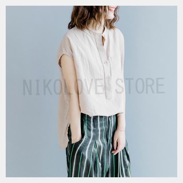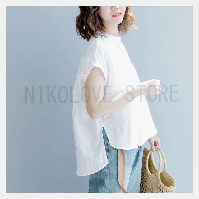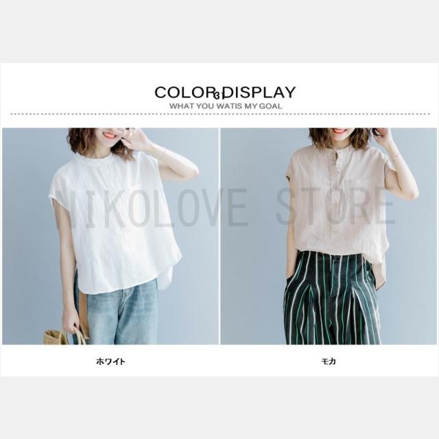 ブラウスtシャツ 夏 トップス レディース プルオーバー フレンチスリーブ 大きいサイズ 無地 綿麻混 コットン リネン シンプル 送料無料