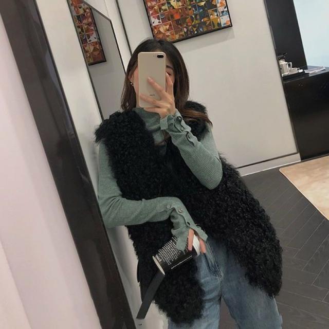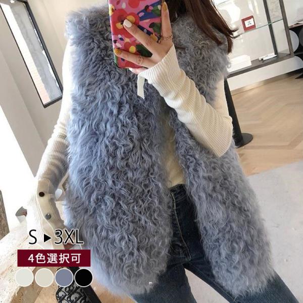 【一部即納】ボアベスト レディース ジャケット アウター 毛皮コートファー チョッキ ロング フリースベスト ジレ 前開き もこもこ 送料無料