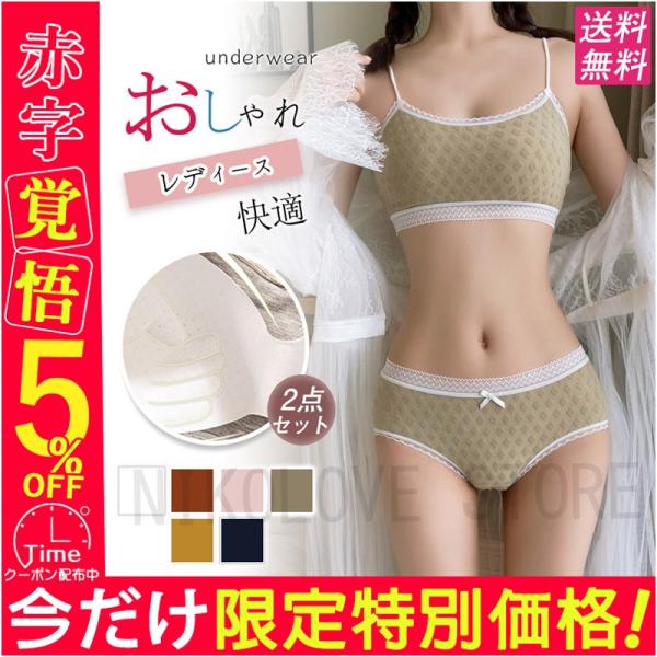 送料無料 ブラジャー ブラショーツ ブラ レディース 美胸 上下2点セット 2点セット 上下セット 盛れるブラ ぶら かわいい ノンワイヤー コットン